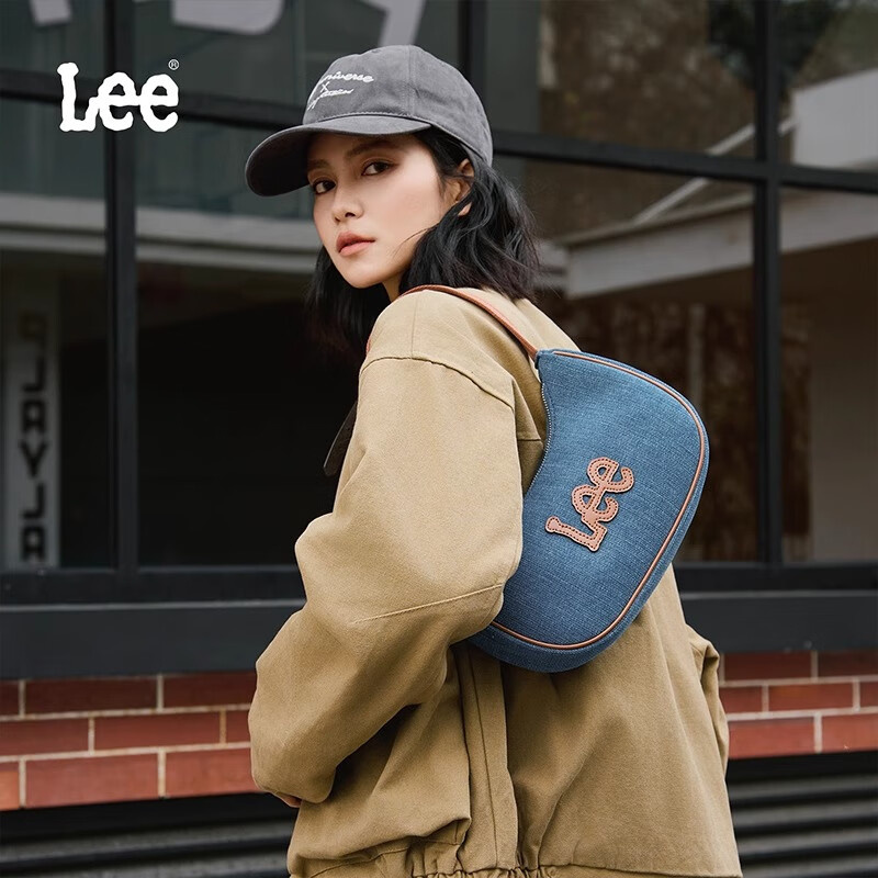 旗舰店LEE飞织丹宁腋下包2024新款时尚女士包手拎单肩包七夕礼物斜挎新月包 牛仔蓝