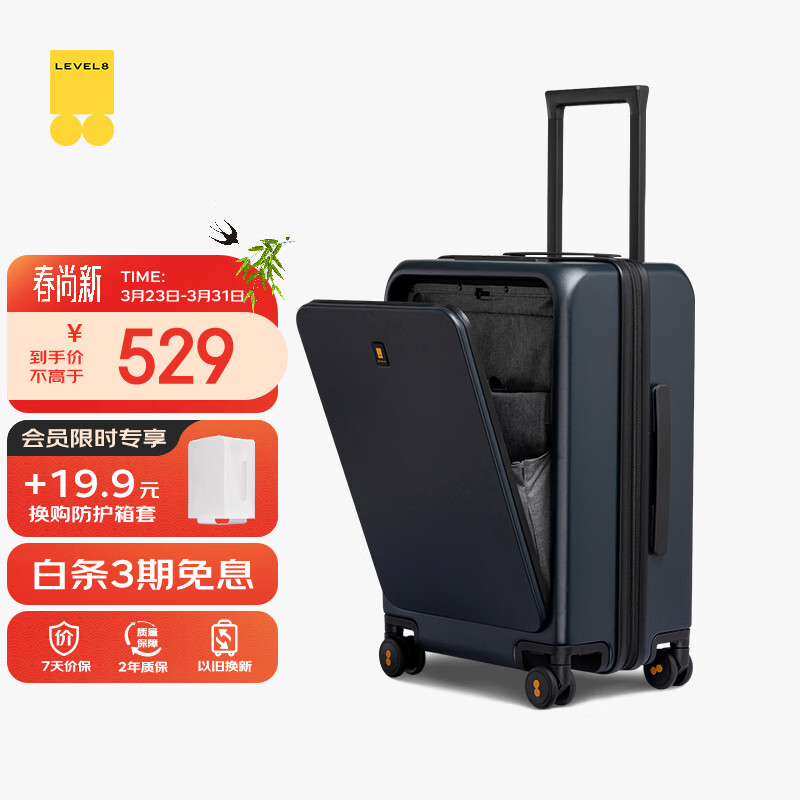 自营地平线8号(LEVEL8)行李箱旅行拉杆箱20英寸男女商务登机箱前开盖万向轮密码箱蓝色