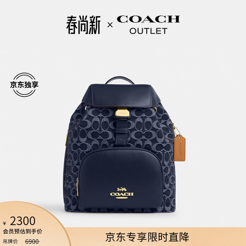 旗舰店蔻驰(COACH)【专享直降】奥莱女士女包经典标志丹宁布PACE大号双肩包背包通勤 IM/丹宁蓝色/天然色