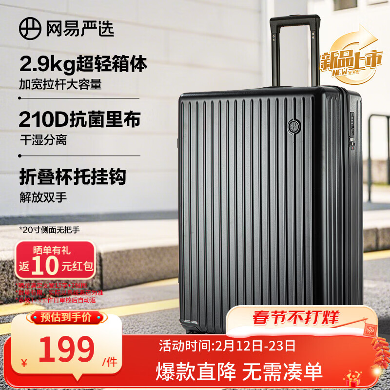 自营网易严选超轻大容量行李箱加厚耐磨出差拉链拉杆箱墨玉黑20英寸【可登机】