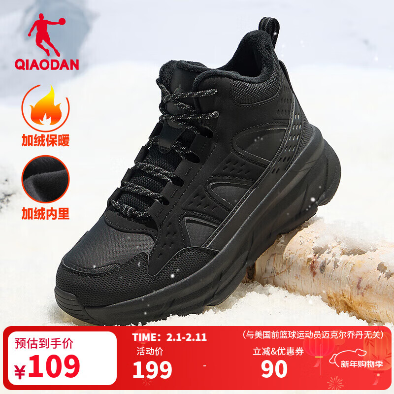 旗舰店乔丹男鞋运动鞋高帮加绒棉鞋加厚皮面革面冬季保暖防水防滑跑步鞋户外 男-黑色/电掣灰 42