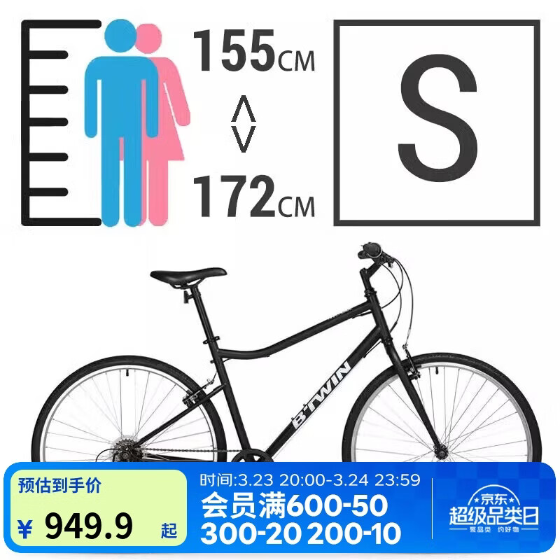 自营迪卡侬自行车R100城市休闲通勤单车碳钢车架6速公路自行车S-2615797