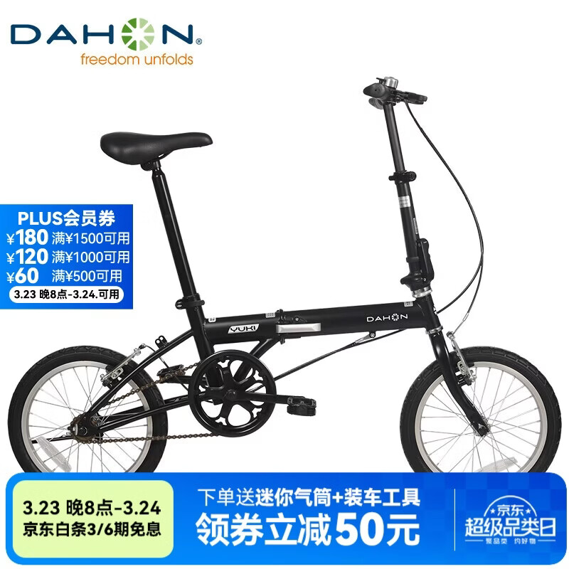 自营大行(DAHON)折叠自行车16英寸YUKI超轻迷你便携男女式通勤单车KT610 黑色