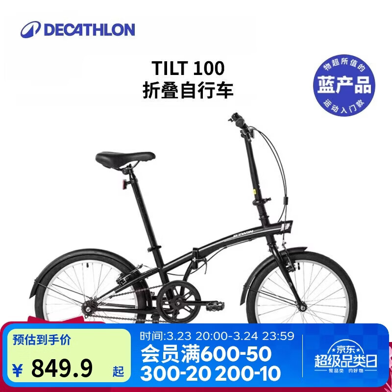 自营迪卡侬自行车T100折叠自行车折叠便携实用城市通勤单车20寸-2430961