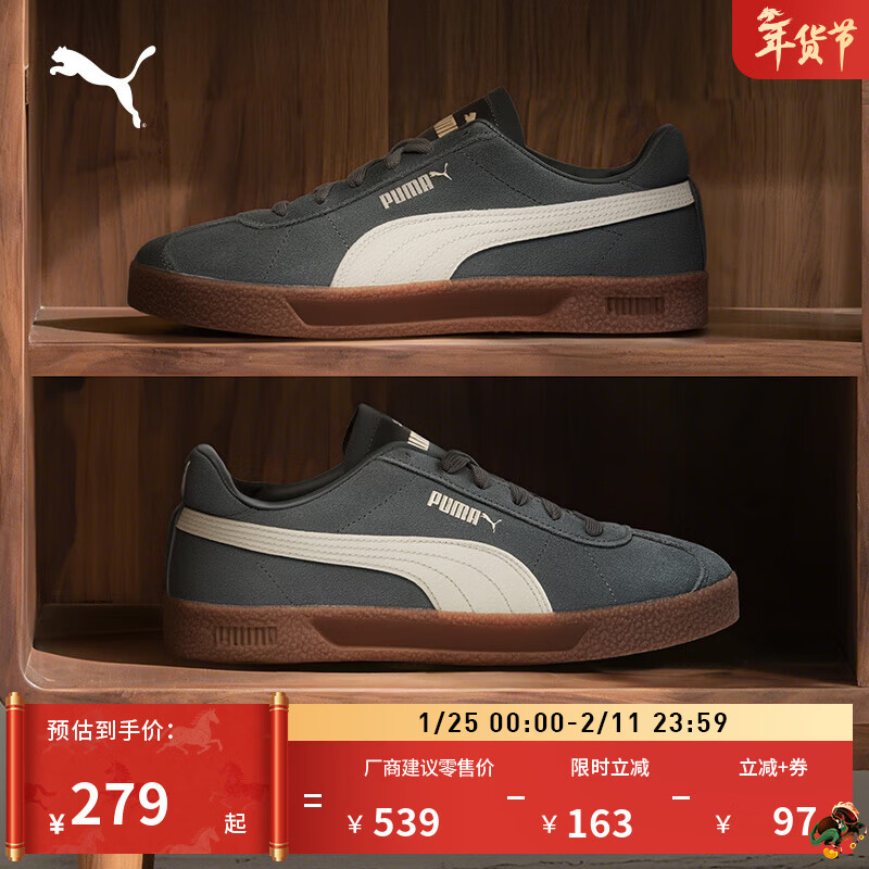 旗舰店彪马(PUMA)德训鞋|经典复古T头鞋男女冬黑色休闲板鞋CLUB401514 矿物灰-白色-白色-03 36