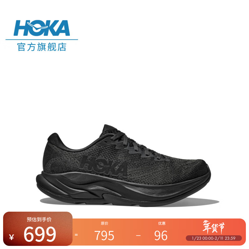 旗舰店HOKA男款冬季林康4公路跑步鞋RINCON 4 轻量防滑耐磨缓震舒适 【新色】黑色/黑色 42