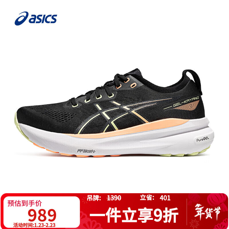 自营亚瑟士ASICS男子稳定支撑跑步运动鞋 GEL-KAYANO 31 黑色/绿色 42.5