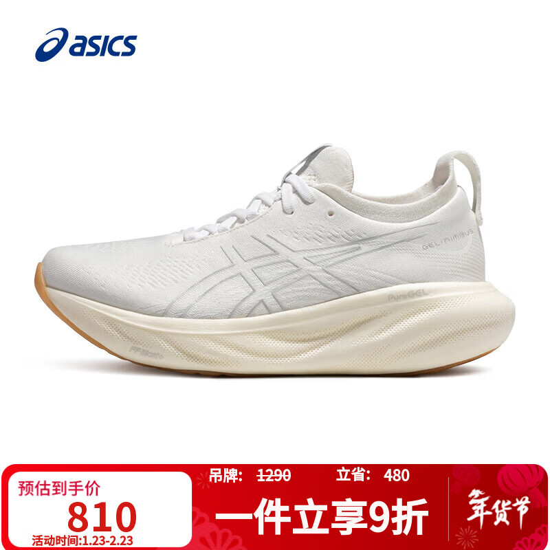 自营亚瑟士ASICS男鞋舒适运动鞋耐磨透气缓震跑鞋 GEL-NIMBUS 25 米色 39