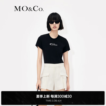 旗舰店MO&Co.2023夏季新品Y2K风闪钻标语弹力修身棉质短袖T恤MBC2TEET21 黑色 XS/155