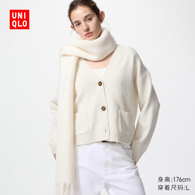 优衣库女装舒芙蕾针织短开衫/外套空调衫通勤478339 01 乳白色 L /160/88A