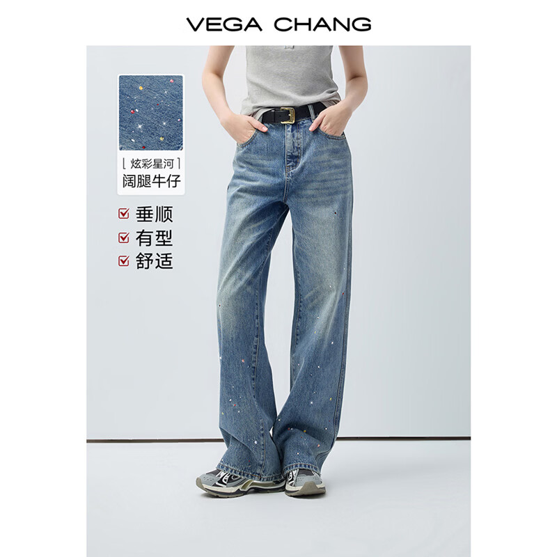 旗舰店VEGA CHANG【星河神裤】高腰直筒牛仔裤女2026新款春复古渐变裤子 羽波蓝 S