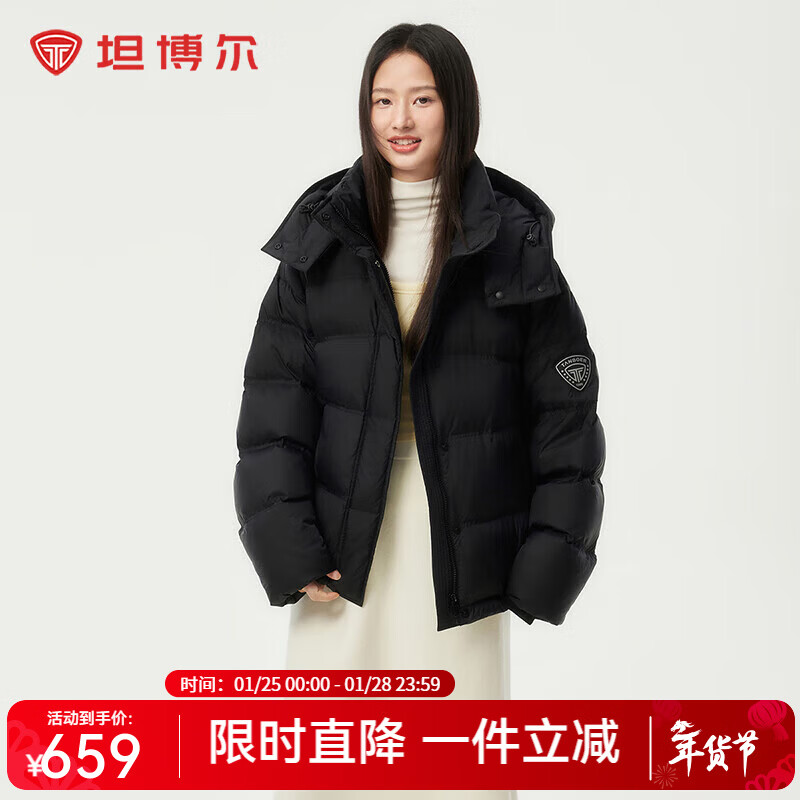 旗舰店坦博尔羽绒服女宽松短款小个子秋冬可脱卸帽秋冬泡芙保暖外套TBF550388T 黑色 XS 155/80A