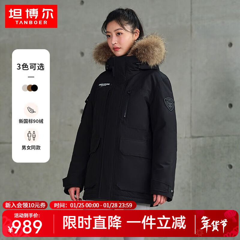 百亿补贴坦博尔小红书同款情侣羽绒服男女派克貉子毛领连帽户外工装外套TF236579 黑色 XS (155)