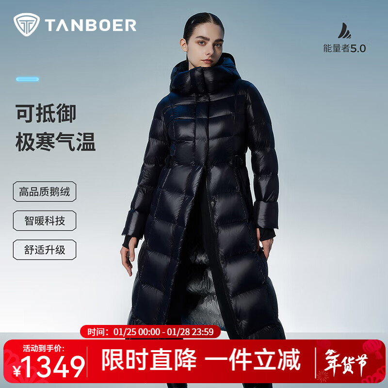 旗舰店坦博尔小个子加厚鹅绒羽绒服女收腰长款冬天保暖外套TBF550890D 极光黑 S (160)