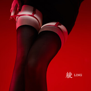 旗舰店绫天生丝滑绫lingerie「绊」3D超薄性感撞色绑带诱惑腿环一体吊带袜夏季丝袜 Red&Black红黑撞色 1双 吊带版