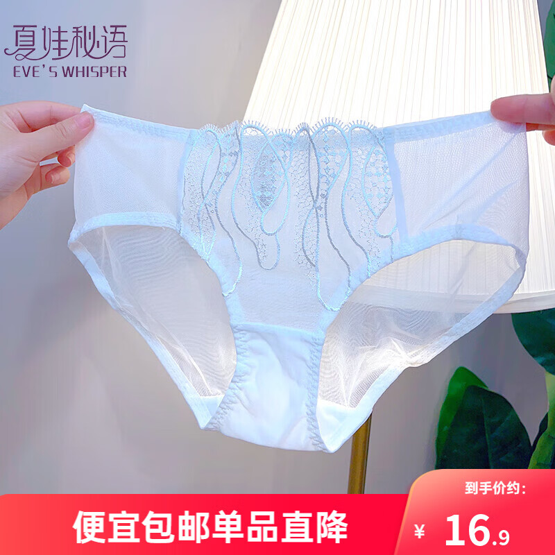 旗舰店夏娃秘语内裤女纯欲风法式薄款透气舒适中腰性感蕾丝三角内裤 白色 (E080) 1条 M
