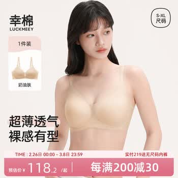 旗舰店幸棉内衣女春夏薄款小胸聚拢软支撑大胸显小胸罩吸汗透气无痕文胸 奶油肤 M (75ABC)