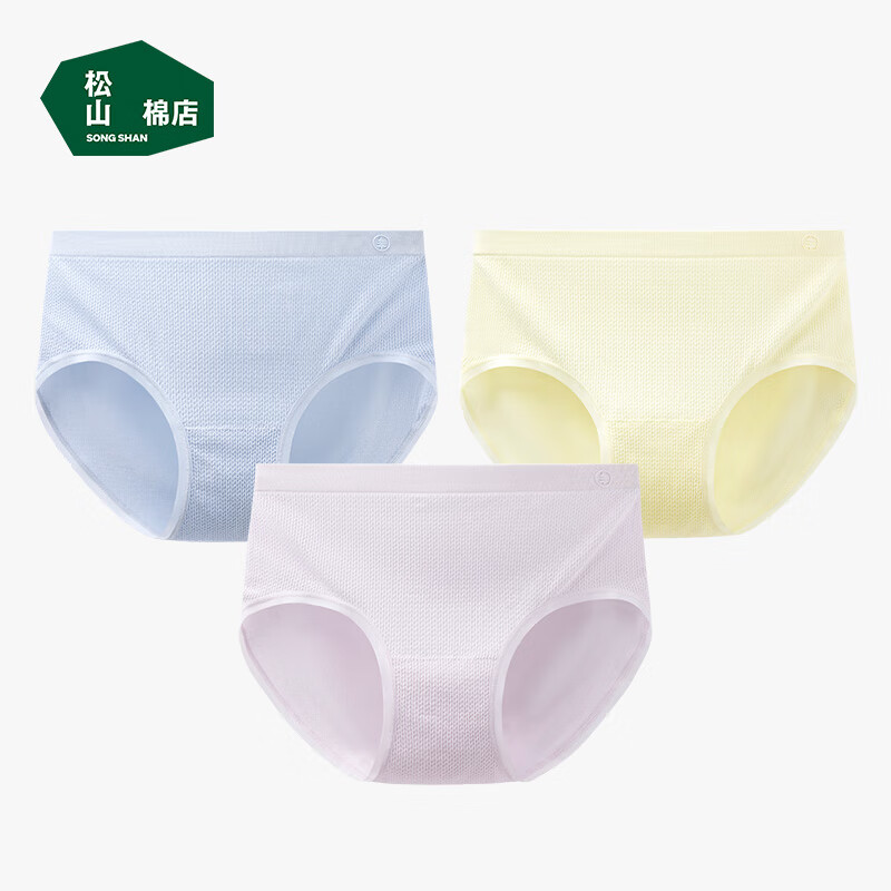 旗舰店松山棉店小麦穗女士蚕柔裤7A抑菌60S莫代尔三角裤透气不闷内裤女 水蓝+彩粉+雾黄 3条 均码 (推荐95-130斤)