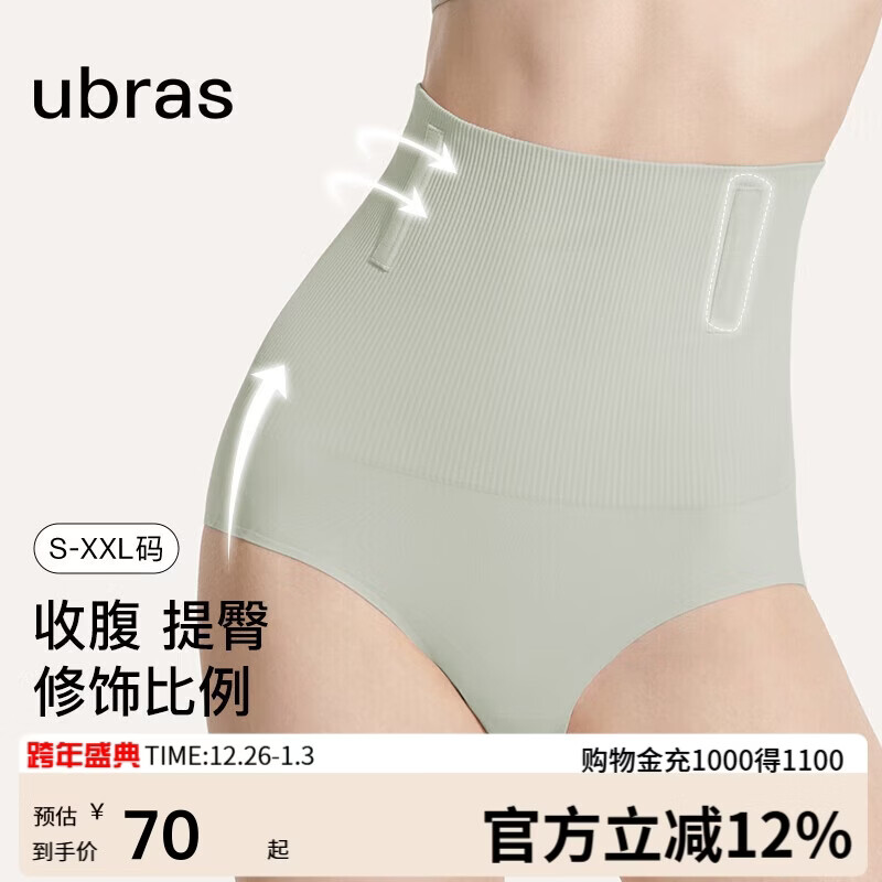 自营ubras高腰收腹提臀裤压缩塑身裤束腰修身女士内裤女鼠尾草三角裤M