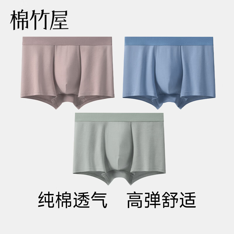 自营棉竹屋纯棉男士内裤舒适10A抗菌透气2026新款无痕全棉平角裤春夏款3条