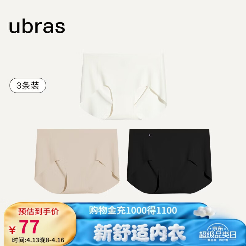 自营ubras无尺码包臀无痕隐形高弹女士内裤女7A抗菌棉裆平角裤-3条装均码