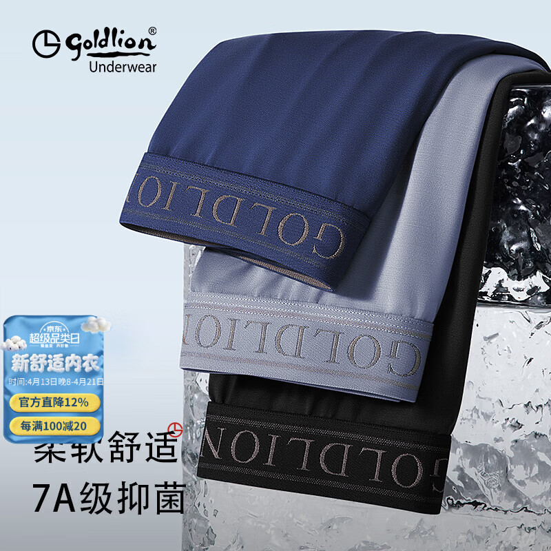 旗舰店金利来(Goldlion)男士内裤男莫代尔7A级抗菌平角裤柔软透气男生四角短裤3条装 玄黑、宝蓝、菘蓝 XL /175