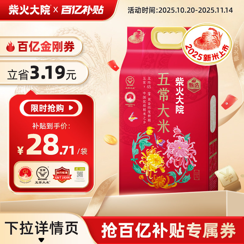旗舰店2025年新米柴火大院溯源五常大米2.5kg东北优质一等粳米香米5斤装