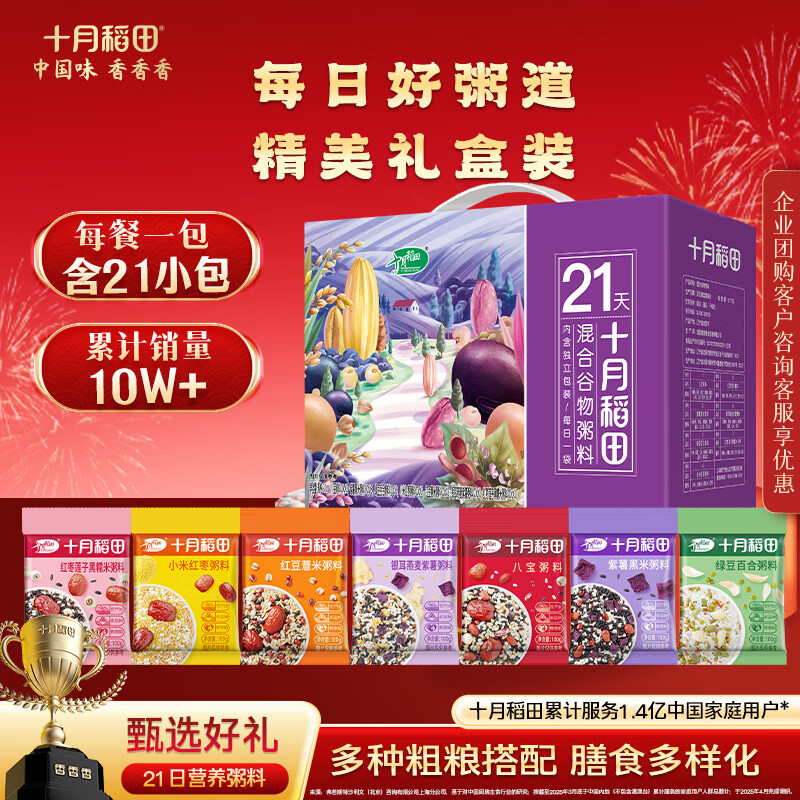 自营十月稻田 21日五谷杂粮粥礼盒4.2斤 八宝粥小米粥腊八粥 腊八节礼福利团购