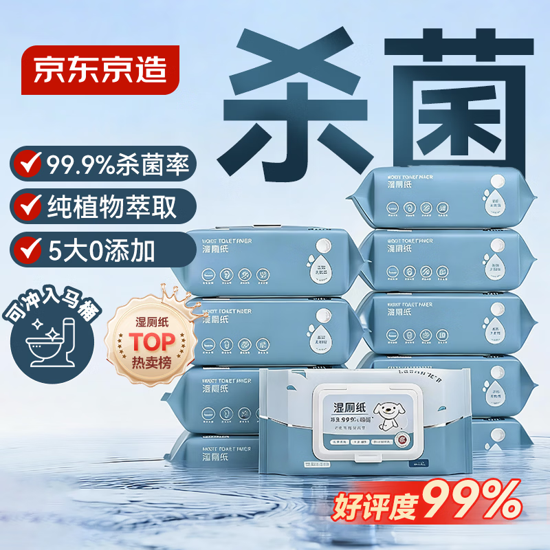 自营京东京造湿厕纸80片*10包 家庭装清洁杀菌湿纸巾厕纸 厚实速散湿厕巾洁厕