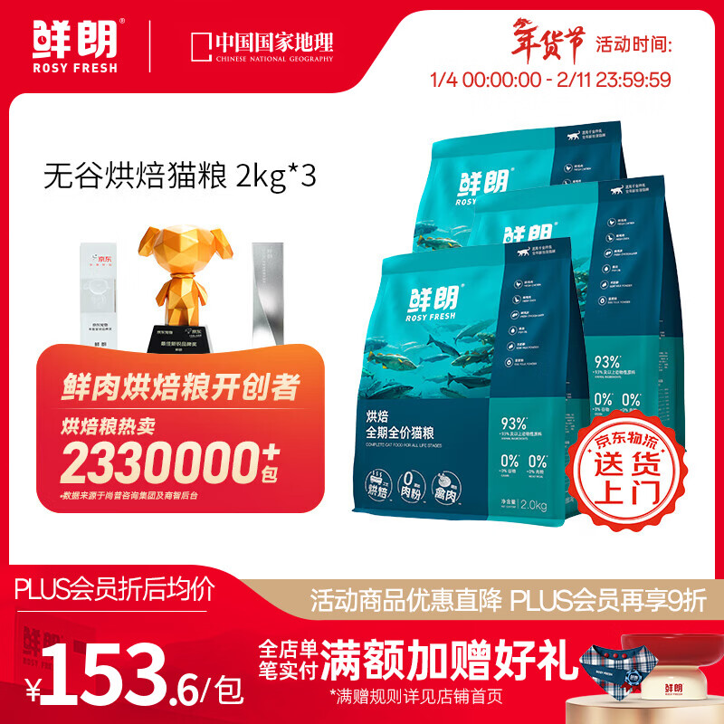 旗舰店鲜朗【PLUS专享】低温烘焙全价猫粮禽肉鱼肉兔肉口味幼猫粮主食冻干粮 烘焙猫粮(禽肉)6kg
