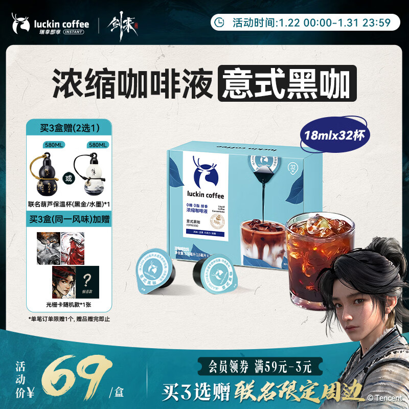自营瑞幸咖啡【剑来联名】0糖0脂醇香浓缩咖啡液意式黑咖18ml*32 冰美式黑咖啡