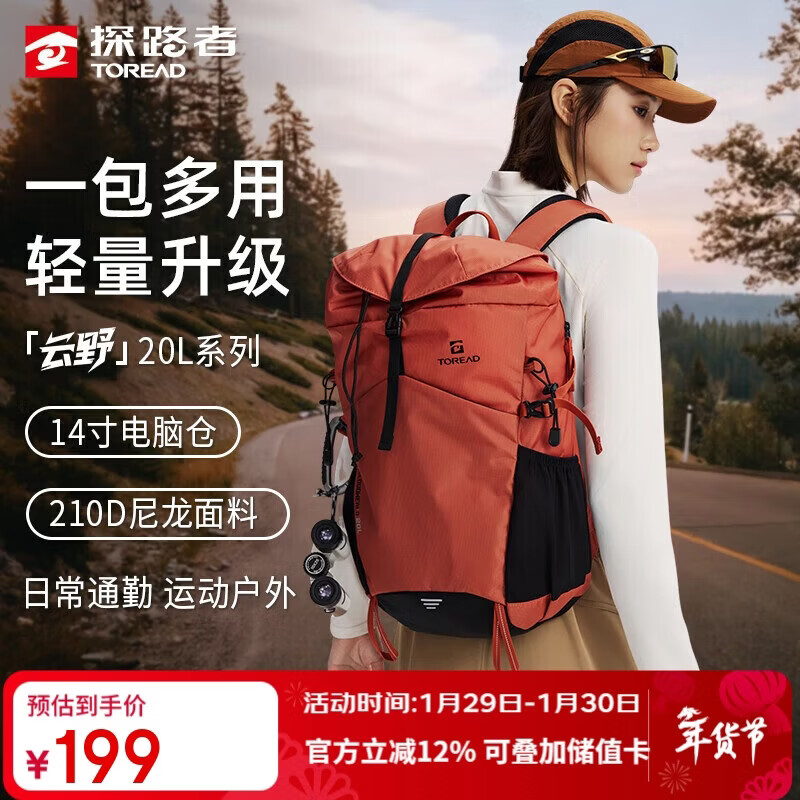 自营探路者(TOREAD)登山背包户外通勤徒步旅行包轻便环保20L大容量减压书包 落霞橙