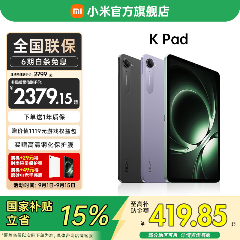旗舰店小米平板 REDMI K Pad 红米平板电脑 8.8英寸 3K屏 天玑9400+ 电竞娱乐大屏平板 深邃黑 12G+512G