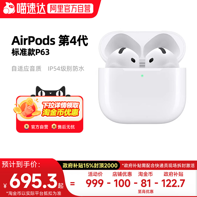 自营【阿里自营】Apple/苹果 AirPods 4 蓝牙耳机P63