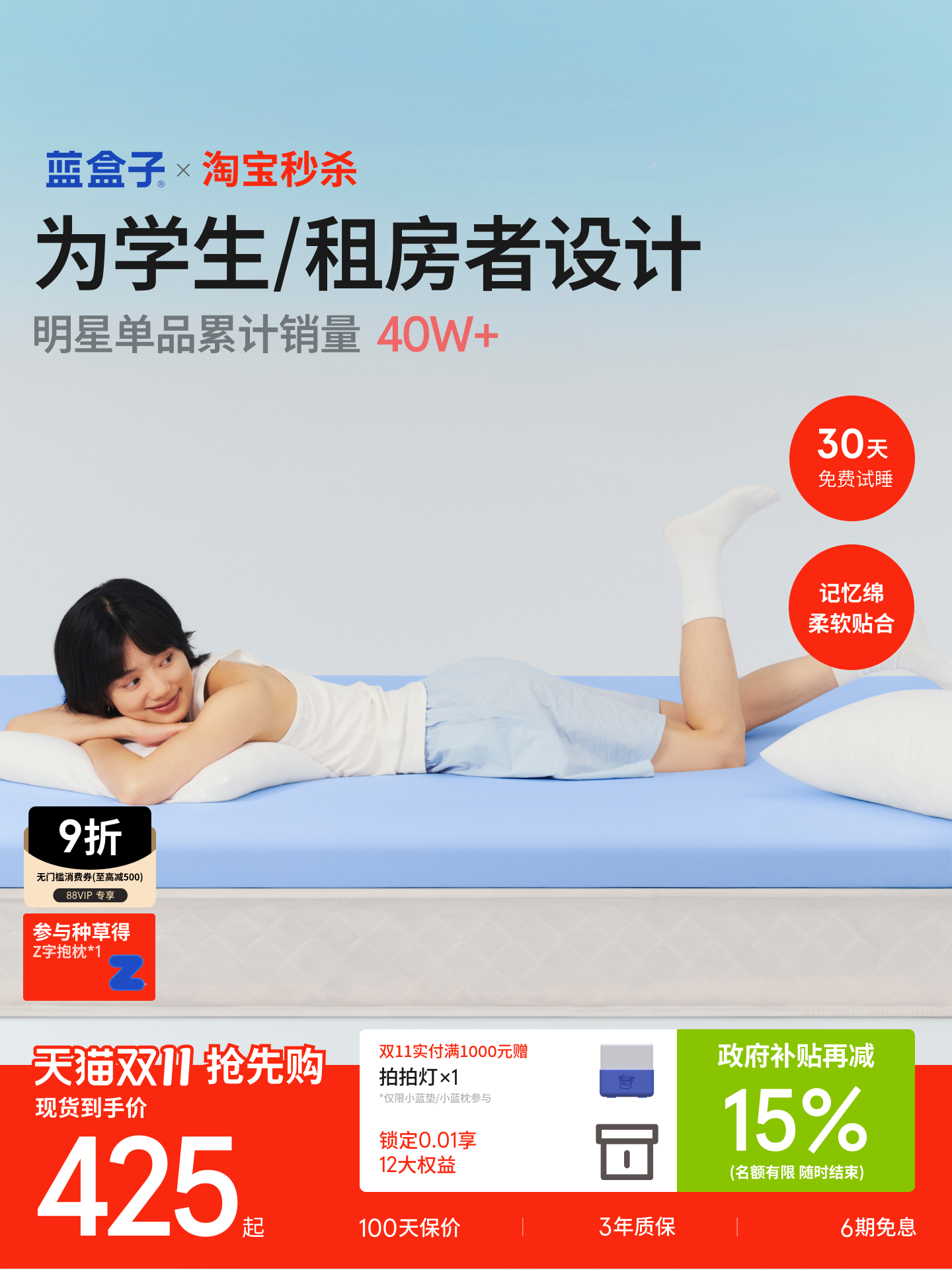 旗舰店蓝盒子小蓝垫薄记忆棉床垫软床褥子学生宿舍租房专用单人榻榻米
