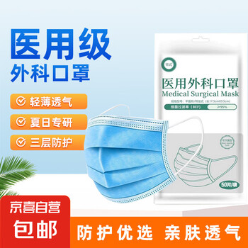 自营医用外科口罩透气型含熔喷层防护3层防细菌防飞沫防病菌防尘口罩 医用外科口罩50片袋装