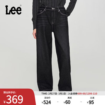 旗舰店Lee宽松直筒五袋款黑色女阔腿牛仔裤休闲潮流LWB008931206 黑色 27