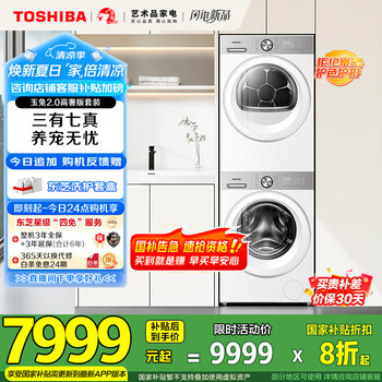 自营东芝(TOSHIBA)玉兔2.0高奢版洗烘套装【DG-10T183BW+T183BW】10KG滚筒洗衣机+变频热泵烘干机 家电国家补贴20%