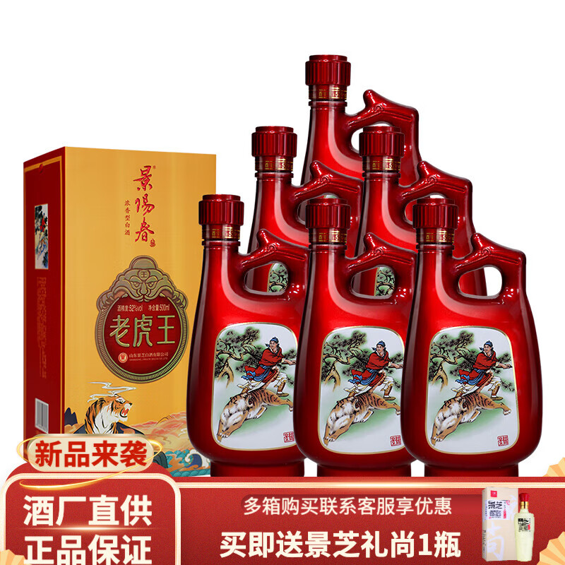 旗舰店景阳春景芝 浓香型高度白酒 节日礼品 52度 500mL 6瓶 老虎王 整箱装