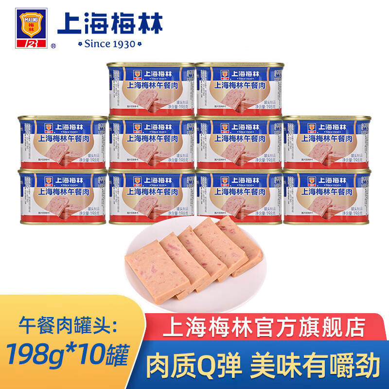 旗舰店梅林(MALING)梅林上海梅林午餐肉罐头罐装猪肉火锅熟食 上海梅林午餐肉198g*10