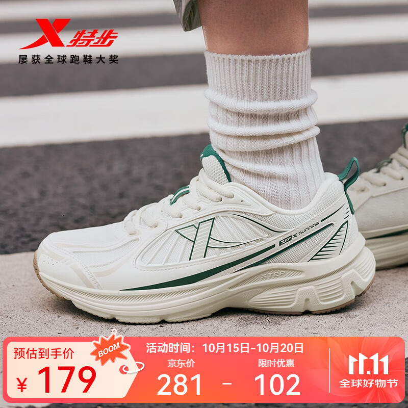 旗舰店特步绝尘6跑鞋女运动健身跑步复古经典百搭减震回弹厚底增高鞋 帆白/丝绒松木色 37
