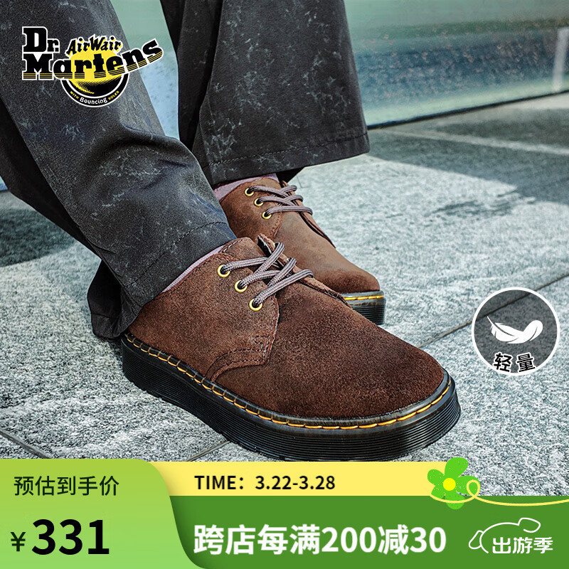 旗舰店马丁(DR.MARTENS)Zavala Lo春舒适百搭轻量翻毛皮棕色薄底皮鞋单鞋 深棕色 36