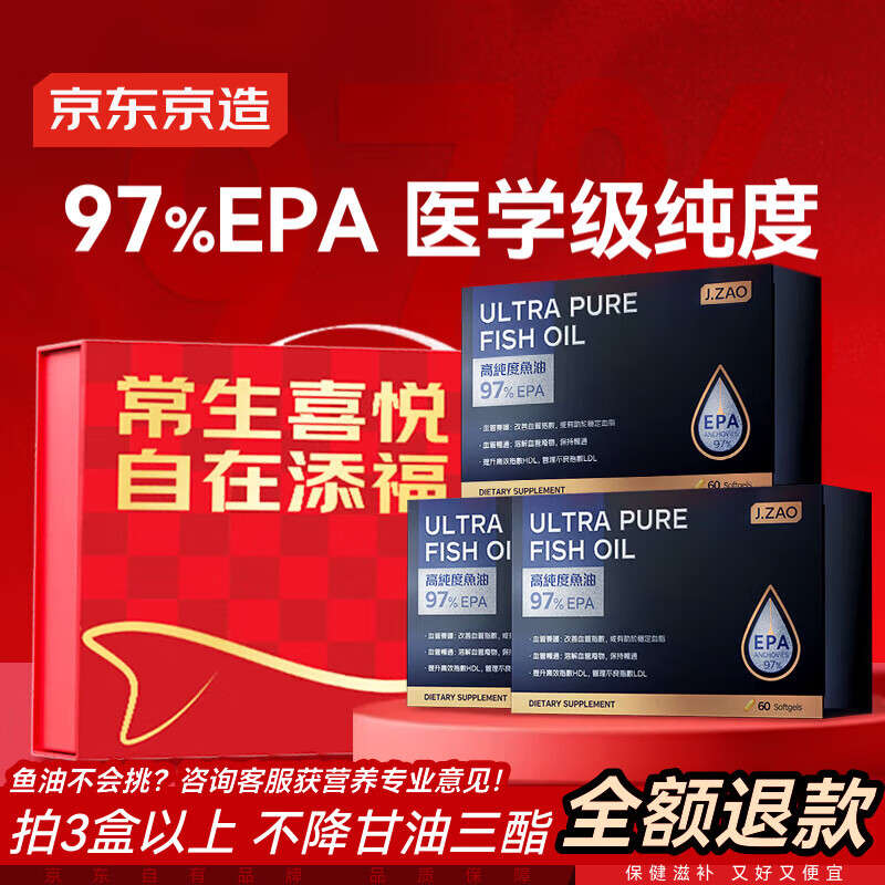 自营京东京造97%高纯EPA深海鱼油软胶囊60粒*3盒降血脂Omega-3非鱼肝油极低dha