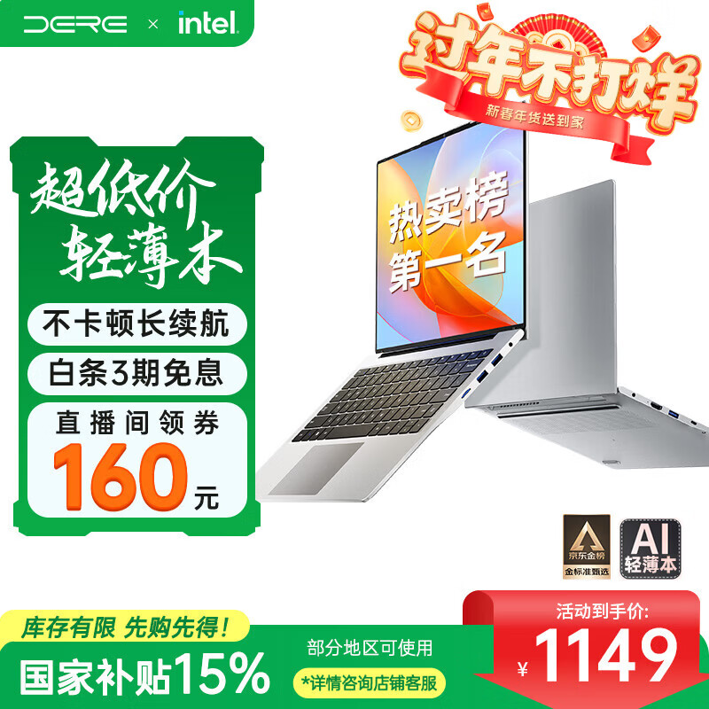 自营戴睿(dere)【直播间领160元券】国家补贴 笔记本电脑 14英寸便携轻薄本 商务办公游戏娱乐网课手提本8G/128G