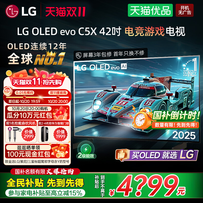 旗舰店【国补立省15%】LG OLED42C5XCA 42英寸电竞游戏电视机144Hz高刷Y