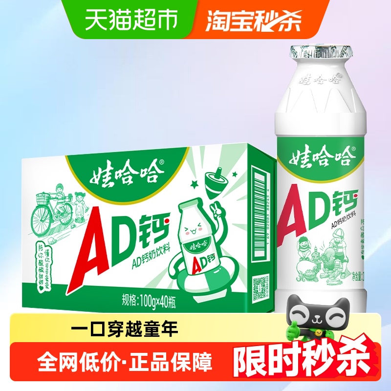 娃哈哈AD钙奶儿童含乳饮料100g*40瓶整箱提手礼盒装哇