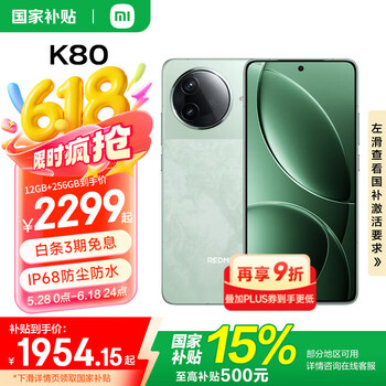 旗舰店小米REDMI 红米K80 国家补贴 5G手机 第三代骁龙8 IP68防尘防水 6550mAh大电池 小米澎湃OS 山峦青 16GB+256GB