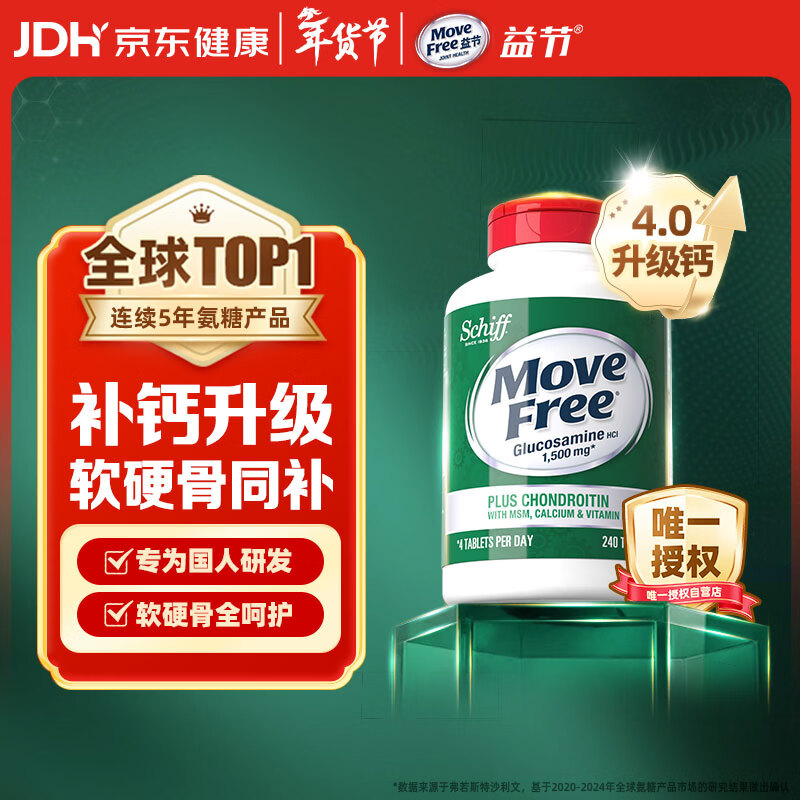 自营Move Free益节氨糖软骨素钙片240粒 5合1维骨力成人中老年美国氨基葡萄糖