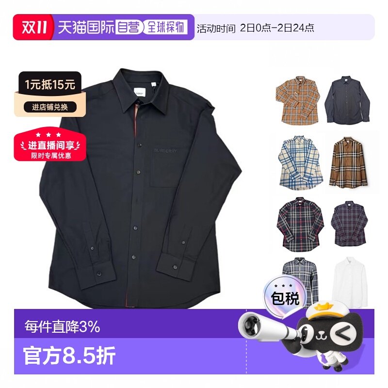 自营自营欧洲直邮Burberry/博柏利 男士藏青色棉修身袖口经典格纹长袖