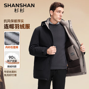 旗舰店SHANSHAN杉杉【可脱卸帽鹅绒】羽绒服男秋冬商务休闲厚款保暖休闲御寒外套 黑色 XL (180)